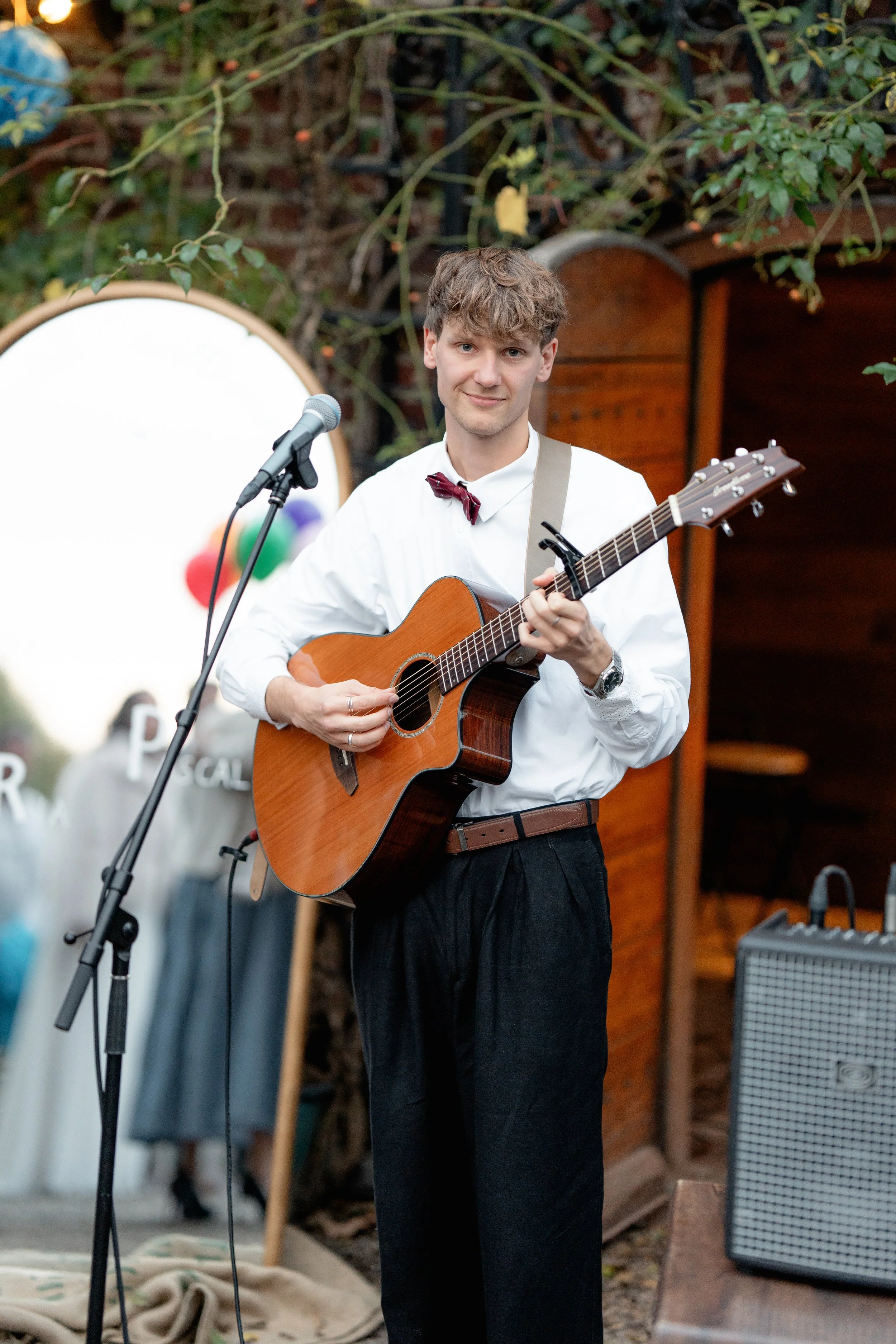 Als professioneller Singer-Songwriter und erfahrener Hochzeitsgitarrist begleite ich eure Trauung, den Sektempfang oder das Dinner mit einem modernen Mix aus warmem Alt-Pop und filigranem Fingerstyle-Sound. Mit Stimme und Gitarre untermale ich euren ganz persönlichen Moment.